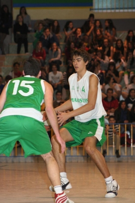 El primer cuarto fue un pulso feroz entre ambos equipos. La igualdad era máxima y las constantes vitales se repetían en los dos conjuntos: Sistema defensivo hombre a toda pista, pérdidas, precipitación, canastas espectaculares,… ¡Tanto se emularon que hasta el predominante color verde de su indumentaria era similar! Anécdotas a parte, dos triples prácticamente consecutivos de Daniel Rodríguez y de Miguel Ceinós por parte de San José del Parque les sirvió para tomar un poco de aire y obtener la primera ventaja relativamente holgada del encuentro: +6 (min. 7, 17-11). Los chicos que dirige Coach Yáñez supieron administrar a la perfección la ventaja, lo que les sirvió para mandar al término del primer acto 19-13.