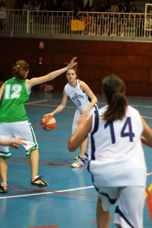 No hay otra manera de comenzar a hablar de este encuentro que no sea mencionando la absoluta locura colegial que había desatada en el Polideportivo San Agustín. Tras una gran foto de familia de todos los equipos de San Agustín se procedería a jugar el San Agustín vs Cabrini tanto masculino como femenino…En canchas paralelas. Como supondréis, sólo con mencionar esto sobra ya decir que las gradas estaban llenas a reventar, y que el ambiente fue absolutamente ensordecedor de principio a fin, tanto por los cánticos locales como por la gran afluencia de aficionados del Cabrini que se habían desplazado hasta allí. En mitad de esa atmósfera única los dos entrenadores comentaban sus sensaciones ante el partido. Gabriel Alemany de San Agustín hablaba de lo ilusionadas que estaban sus chicas con el partido, ya que era su debut en esta Copa Colegial ABC 2010, y mencionaba convencido que tratarían de ganar el partido desde el principio a través de la defensa. Carlos Gómez de Cabrini por el contrario comentaba que era un partido muy emotivo dada la reciente muerte del padre de su delegado, y que “a ver” cómo respondían sus jugadoras ante ello, si con apatía y tristeza o con ganas de rendirle homenaje. Así pues, tras el pertinente y respetuoso minuto de silencio ambos equipos saltaban a la cancha. Lo primero que se pudo comprobar es que Alemany no engañaba a nadie: San Agustín apretaba desde el principio la subida de balón con una asfixiante presionante que le proporcionó muchos balones y generó cierta ansiedad en las jugadoras de Cabrini. Por desgracia en ataque no eran capaces de revertir la tendencia agresiva y por tanto desaprovecharon varios ataques por estar demasiado aceleradas, lo que ayudo a Cabrini a templar su juego poco a poco a través de Marta Presa y de García, y generarse las primeras ventajas. Esta tendencia se mantuvo hasta que la polivalente Fernández, decidió que era la hora de echarse el equipo a la espalda y con varios robos y segundas oportunidades en el rebote ayudaba a que su equipo retomase el mando del marcador. Tras esos arranques de rabia San Agustín logró relajar por fin su juego y tener sensación de control en la situación, mientras que Cabrini seguía metido en el partido, pero no terminaba de conseguir canastas claras. Así llegábamos al segundo cuarto con 14 – 7 a favor de las locales. Tras las instrucciones de los dos entrenadores volvía la acción. Belamán comenzaba el período con una canasta llena de fundamentos, seguida de un triple de Laura García que distanciaba a San Agustín. El mayor banquillo y fondo de las locales estaba empezando a agotar a Cabrini, donde García salía como podía de la presión a todo campo y sólo las penetraciones y casta de Irene Presa intentaban hallar algo de luz en la telaraña local. Ante esta imposibilidad de hacer su juego pausado la precipitación comenzó a aparecer entonces en cada uno de ataques visitantes, lo que convirtió el partido en un correcalles durante algunos minutos. Esta circunstancia la supo aprovechar San Agustín, al cual la frescura que proporcionaban las rotaciones y el tener a dos “all around players” como Fernández y Serrano les permitía aumentar paulatinamente la ventaja ante unas rivales que para colmo veían cómo cuando conseguían opciones claras el balón no terminaba de entrar. Parecía que el ánimo comenzaba a decaer, pero dos grandes canastas de Mayo y un tremendo tapón de De Alcalá a Polo cuando ya se marchaba sola hacia el aro dejaban claro que Cabrini no tenía pensado bajar los brazos. El marcador reflejaba un 32 – 16 al descanso, mas la sensación era de que el partido no estaba para nada terminado. La reanudación nos deparaba una salida fulgurante de Cabrini, donde Irene Presa percutía, García penetraba y doblaba buscando tiros fáciles, y Turrión demostraba ser una absoluta colosa en el rebote. Parecía que la tendencia del partido podía variar, pero entonces apareció Serrano, que con su vuelta a cancha reestableció el equilibrio con dos canastas seguidas, amén de su presencia física. El juego entraba entonces en una fase de “tuya – mía” donde ambos equipos avanzaban a trompicones; San Agustín mediante robos y contras, y Cabrini encomendándose a una Irene Presa que sacaba falta tras falta y dejaba claro su liderazgo en el equipo equipo. Una serie de tiros mal seleccionados de las locales parecía que permitían a Cabrini acercarse, pero de nuevo el cansancio hacía acto de presencia, dejando a las jugadoras de San Agustín dos contraataques sencillos que cortaban la posible reacción. El marcador era 51 – 30. Aunque se podía ver cómo Cabrini tenía calidad y lucha en sus jugadoras, empezaba a estar claro que eso no era suficiente ante la gran defensa y sangre fría que esgrimían las locales. Sólo nos quedaban ocho minutos de partido, en los cuales la inercia no varió demasiado. San Agustín se sabía absoluto controlador del partido, y esta tranquilidad les permitía aprovechar sin problemas los robos y rechaces ofensivos que conseguían. En las visitantes el agotamiento era ya un condicionante imposible de eludir, y sólo una inconmensurable García lo intentaba una y otra vez con arranques de rabia y corazón. A pesar de esos intentos, la entrada de nuevo de Fernández y Serrano era la certificación de victoria ante un equipo donde Turrión estaba ya demasiado sola en el rebote, y una extenuada Irene Presa dejaba paso junto a sus compañeras titulares a las menos habituales. El entrenador de San Agustín procedió de la misma manera, con lo que se los últimos minutos fueron bastante relajados por parte de ambos equipos, y el público y los banquillos comenzaron a estar ya casi más pendientes del emocionante partido masculino, al cual no dudaron en ir a animar una vez acabó el encuentro con el contundente resultado de 71 – 36, en una clara muestra de amistad y compañerismo para con los chicos. La sensac
