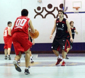 Llegó el Super-Viernes al Pabellón de la Calle Vital Aza y cómo en las demás canchas, no defraudó y dejó varias sorpresas agradables. Quizá la más importante fueron los 37 puntos que anotó Guillermo Sánchez por parte de los Lobos que le meten directamente en la segunda posición de más puntos anotados por un jugador en un partido, sólo por detrás de Rodrigo Zamora, que desde 2007 está al frente de este ranking. Pero, por desgracia para Guillermo, sus puntos no fueron suficientes para doblegar a unos Canguros en los que emergió por encima de todos la figura de Juan Antonio Pámpano. Todas las estrellas fueron alguna vez jugadores secundarios que en algún momento de su carrera dan un paso adelante y se convierten en leyendas, ayer ese paso lo dio el 34 marsupial, que haciendo honor a su número, se doctoró ante los grandes pivots de Agustiniano. Un partido de mucho contacto El ambiente se iba calentando y en éstas, el balón se puso en movimiento. La primera jugada acabó con Pámpano estrenando el marcador tras anotar dos tiros libres, posición de ventaja que no abandonarían hasta que sonase la bocina final. Después, un par de minutos de imprecisiones y continúas faltas, Sergio Gómez, Mejor Jugador And 1 de Joyfe en el encuentro anterior, se marchó al banquillo después de cometer la 2º personal, Joyfe perdía momentáneamente a uno de sus principales puntales en apenas 3 minutos. Uno de los dos tiros libres que propició la falta, lo anotó Alessandro Rocca que anotaba el primer punto de su equipo. Con su compañero en el banquillo, Daniel Torrijos decidió que había llegado su momento, y con 6 puntos consecutivos obligaba a "Coach” Gutiérrez a pedir tiempo muerto, se les empezaba a ir el partido (8-1 min 6). Pero Guillermo Sánchez no iba a permitirlo y empezó su festival anotador, con 7 puntos hasta la finalización del primer cuarto que dejaban el partido en 11-9, Carlos Cantalejo tuvo la oportunidad de haber puesto por delante a su equipo, pero su tiro desde 6.25 con la bocina sonando fue repelido por el aro. Pámpano empieza a despuntar Con Gómez en el banquillo, y Torrijos que no tenía su día en el lanzamiento (acabó con 0/6 en triples), Pámpano dio el paso adelante que antes comentábamos y empezó a asumir protagonismo con buenos movimientos interiores, ganando la posición continuamente a unos defensores que no podían pararle y así anotó los 4 primeros puntos de su equipo, demostrando su fortaleza y pundonor ya que empezaba a cojear ostensiblemente. Viendo su inferioridad interior, Agustiniano se puso en zona, ya que ni Cuesta ni Martínez eran capaces de defender a Maestro y Sánchez, pero aún así las diferencias se mantenían. Carlos Cantalejo tomó el relevo en la dirección del juego, los Lobos lo intentaban de todas las maneras pero Joyfe se mostraba muy sólido. Gómez volvió a la cancha con ganas de demostrar lo que no había podido hacer en el primer cuarto y anotó un triple en su primer ataque que rompía la zona de los de negro. La pareja interior Pámpano y Gómez colocabana su equipo 11 arriba a falta de un minuto para el final, pero Agustiniano subió líneas ante el cambio de base de Joyfe (Torrijos necesitaba un respiro y en su lugar entró el rookie Zazo, dos robos de pelota con posteriores bandejas, ponían la diferencia en tan sólo 7 puntos al descanso. 30-23 Los espectaculares tapones El tercer cuarto empezó,cómo no, con Pámpano recibiendo el balón y anotando un 2+1 y con Joyfe en una zona 3-2 que provocó el atasco en Agustiniano que tardó 4 minutos en conseguir anotar. En estas estábamos cuando Torrijos nos quiso recordar su faceta defensiva con dos tapones consecutivos, a la altura de los dos que colocó en el primer encuentro ante Padre Manyanet, esta vez la respuesta la obtuvo del otro capitán, Guillermo Sánchez, que se encargó de recordarle que no era el único que sabía taponar y le colocó al propio Torrijos un tapón impresionante. El propio Sánchez empezaba a ver como el partido se complicaba en exceso y empezó a asumir aún más protagonismo, pero en el otro lado respondía una y otra vez Sergio Gómez que ya, sin agobios por el tema de las faltas, jugaba sin presión y la ventaja marsupial creció hasta los 12 puntos. 48-36 al final del tecer periodo Agustiniano echa el resto Con los dos equipos con problemas de faltas,7 jugadores acabaron eliminados por 5 personales, empezó el útlimo y definitivo periodo y lo hizo con una sucesión de canastas que favorecía a Joyfe que veía como pasaban los minutos y su ventaja seguía en más de 10 puntos. Los Lobos se jugaron la última carta intentando robar arriba y anotar con facilidad y Sánchez se emparejó con Torrijos, la diferencia de altura era grande en favor de la estrella de los Lobos, pero su gran agilidad le permitía defender bien al base rival. Pese al agobio al que se veía sometido, Torrijos dio muestra de su gran manejo del balón y conseguía salir de la presión una y otra vez. Quedaban 3 minutos y Joyfe ya saboreaba la victoria (62-46 min. 35) pero Sánchez dirigió el último arreón de su equipo que consiguió un parcial de 10-0 en apenas minuto y medio. El entrenador marsupial tuvo que solicitar un tiempo muerto para pedirle tranquilidad a sus pupilos que empezaban a temer un mayor acercamiento y echar por tierra todo su trabajo durante el encuentro. Pero los 3 puntales de Joyfe demostraron su categoría en los momentos difíciles, esos en los que las estrellas hacen gala de recursos y ponían la tranquilidad en la grada anotando los tiros libres de los que dispusieron. Al final dejaron el marcador en 69-57 y ponen a Joyfe en los cuartos de final de la Copa Colegial ABC, en su camino hacia la reválida del Estandarte de Campeones y mejorando la participación de hace dos ediciones, lo que demuestra que estos chicos, a los que en su gran mayoría les queda mínimo otro año como colegiales, siguen creciendo y dejando bien alto el 