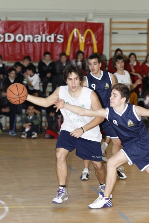El baloncesto colegial tiene algo diferente. Que se lo digan a todos los que estuvimos en la cancha de Pinosierra. Con un lleno hasta la bandera, con un ambientazo de lujo, una perfecta organización por parte local, todo estaba preparado para disfrutar de un partidazo. Y lo disfrutamos Primer Cuarto Balón al aire, los dos centers, los dos 17 la luchan y se la lleva el jugador local pero la pone ” out of bounds”. Primera posesión para los visitantes, que empiezan a mover el balón con velocidad por medio un gran “backcourt” formado por Canal y Miralles con García Perrote de escolta. Por parte local una zona es la respuesta con Expósito en el medio viéndose las caras con Barja, la torre rival. Ambos equipos están nerviosos, la Copa Colegial ABC hace sentir su presión, hasta que una canasta de Brioso, abre el marcador para los visitantes. Sigue la tensión, cuando hay que tirar las muñecas están rígidas, cuando se reciben pases son de mantequilla, los aros se empequeñecen y el balón parece que tiene ideas propias. Son dos minutos de confusión, Barja anota desde dentro, Sanpa cuatro arriba El público sigue animando, la afición Pinosierra está volcada y dos canastas consecutivas de su equipo que igualan el marcador, desatan la locura en las gradas. Pero San Patricio se está asentando. Con una defensa en toda la cancha, cortando las líneas de pase locales, robando balones y ejecutando magníficamente el contraataque, como por ejemplo la sensacional entrada de Canal que significo el 4 a 9, los jugadores de La Moraleja desarbolan a sus rivales con un parcial de 0-9. Acaba el cuarto con diez puntos de ventaja visitantes y los jugadores de Pinosierra están bastante tocados. ¡Show Time! Saltan a la chancha las animadoras de Pinosierra. Impresionantes, guapísimas, al ritmo de “We will rock you” se llevan al público de calle Segundo cuarto. San Patricio ha hecho presa y no va a soltarla. Sabiendo en todo momento lo que hacer, van a matar el partido. Y lo hacen. Ante un ataque rival que no existe, enfrentándose a un defensa voluntariosa pero vulnerable, los Duendes van ampliando la brecha en el marcador. Ocho puntos consecutivos elevan el parcial a 0-17, 4 a 22. la afición Pinosierra sigue animando, pero hay cierta resignación, los visitantes son superiores y no hay nada que hacer… Un tiro libre de Gómez provoca los aplausos de la grada pero Mañas los silencia con un triple demoledor. Quedan dos minutos. El partido tiene dueño. Aprovechando una cierta relajación visitante los jugadores de “Coach” Sánchez vuelven un poco a la vida…acaba el cuarto 10-29. Intermedio. Vuelven a escena la Pinosierra Girls. Y si la primera vez sonó el “We will rock you” esta vez, “they rocked us”. Sin duda, el mejor conjunto de animadoras de estos cuatro años de Copa Colegial ABC, lo que significa el mejor grupo de animadoras colegiales de los últimos años…Menudo espectáculo, pleno de ritmo, perfectamente coreografiado, sin duda las chicas de “ Coach” Carballo marcaron la diferencia…Y atentos al reportaje exclusivo que las haremos en la web… Vuelven ambos equipos a escena. El público sigue en sus asientos. Aunque, con alguna excepción de algún seguidor local que no entendía de baloncesto, el comentario general era algo así como “En fin nuestros chicos lo han intentado, pero San Patricio es otra historia, vamos a quedarnos a verlo porque los chavales con la que han montado se lo merecen, pero esto está sentenciado” Tercer cuarto. El comentario general se equivocaba, el seguidor local entendía de baloncesto… No tengo ni idea de que dijeron en el vestuario, pero el equipo de Pinosierra que salió a la pista era otro, un equipo dispuesto a todo, a dejarse la piel en la pista ¡Y vaya si lo hicieron! Con Novillo como referencia ofensiva ( ver vídeo en ABC TV) perfectamente secundado por Poyatos, con Martil y Expósito reboteando en ambas canastas como fieras, Pinosierra se convirtió en una marea azul, un tsunami de baloncesto. ¡Menuda salida! Un parcial de 13 a 0 les vuelve a meter en el partido. Un triple de Garcia-Perrote despierta a Sanpa, pero Pinosierra ha vuelto… El pabellón es una olla a presión, Novillo sigue ejerciendo su magia en ataque y sus rivales solo anotan desde el tiro libre. Acaba el cuarto y Pinosierra ha estado a punto de hacer el milagro de dar la vuelta al marcador. Último cuarto. ¡¡Esto es baloncesto colegial!! ¡Pura locura! Un triple de Poyatos abre el cuarto. El pabellón es un solo grito ¡¡Pinosierra!! Dos canastas consecutivas de Novillo igualan el marcador. ¡¡Es de locos!! San Patricio está tocado. En la banda buscan soluciones. A Canal le tiembla la muñeca desde el tiro libre….Pero en el siguiente ataque Barja anota un 2 + 1 providencial. Y Martil con dos tiros libre mantiene a Pinosierra un punto. El partido está al rojo vivo. Quedan dos minutos. Ya no es cuestión de quien juega mejor al baloncesto, no es cuestión de técnica, ni de táctica…es cuestión de corazón, de garra, pero sobretodo de sangre fría …y de suerte. Y San Patricio tuvo ambas cosas concentradas en un hombre. Impresionante minuto de Brioso. Tres jugadas de pura inteligencia, de anticipación y de ver claro el camino hacia la canasta rival significaron un parcial de 6 a 0, un mazazo demoledor para un Pinosierra que empezaba a acusar el tremendo esfuerzo realizado y aunque lo intentó hasta el último segundo, no pudo dar la vuelta al marcador. Pitido final 41-45. San Patricio sigue en la Copa Colegial ABC. ¡Enhorabuena! Y por lo demostrado, tiene equipo para llegar alto. Y Pinosierra está fuera. Pero sin duda deberán estar orgullosos, ellos y todo el colegio del magnífico espectáculo y de la lección de coraje y orgullo colegial que dieron ¡También enhorabuena! Os esperamos el año que viene… ¡Que grande es el baloncesto colegial!