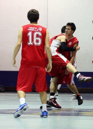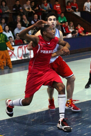 Cuando llegas al Pabellón del Colegio Joyfe en la calle Vital Aza te reciben dos enormes Estandartes colgados del techo. Corresponden a los títulos masculino y femenino que poseen los Canguros. Sólo con verlos te haces a la idea de que esta no es una cancha fácil. A este lugar llegaban sus vecinos del Obispo Perelló, preparados para afrontar un doble enfrentamiento de dos colegios separados por apenas unos metros. Sería el partido masculino el encargado de abrir la jornada. Si a alguno no le impresionaban los estandartes, tenía otro motivo por el que preocuparse. Los chicos de Joyfe llevaban sin perder en su cancha desde 2008. En definitiva, un fortín defendido en primera línea por jugadores que saben lo que es ganar el Estandarte como Torrijos, Pámpano, Carmona o Maestro a los que el año pasado se sumó un Sergio Gómez con ganas de saber lo que significa ganar la Copa Colegial. Además, todos sus compañeros remando para ayudarles a sacar adelante los partidos. El año pasado los cuartos se les escaparon por muy poco, en un enorme partido contra Buen Consejo. Este año querían mejorar lo conseguido en 2010. Este escenario se encontraban los chicos del Perelló El año pasado cayeron en primera ronda y tocaba demostrar que fue únicamente un accidente. Que quieren que el nombre de su colegio empiece a sonar con fuerza en esta competición y que en el futuro quién no les tenga en cuenta se puede llevar un buen susto. Con la baja de Sanz, antes de empezar el partido ya nos comentaban que sería Mike García el encargado de llevar a su equipo a la victoria, apoyado en la fuerza de un gran espíritu de equipo en el que todos suman. Puntual llegó a su cita el balón del encuentro para echar a volar por encima de nuestras cabezas y fue Alfonso Casado el encargado de estrenar las redes de las canastas del Pabellón de los Canguros. Torrijos decidió enseñar a todos que él mandaba allí y su inicio de encuentro fue explosivo, un triple para inaugurar el tanteador de su equipo, de blanco en esta ocasión por la coincidencia de uniformes, un tapón y un posterior contraataque que no puedo convertir en canasta. Visto el inicio del base local, su homónimo visitante también dejó su tarjeta de presentación con 7 puntos en el primer cuarto de los 14 que consiguió su equipo. Un primer cuarto con un bajo marcador de 11-14 dejaba tres puntos arriba al conjunto visitante que manejó mejor la presión al inicio del partido. La afición del Obispo Perelló despertó y el partido empezó a jugarse también en las gradas. Comenzaba así el segundo cuarto marcado nuevamente por la igualdad y en el que empezó a surgir la figura de Juan Antonio, el rey de los tableros, Pámpano, encargado de coger todos los balones que se salían de la canasta. Evitaba así segundas oportunidades de los jugadores de OP que perdieron el acierto que mostraron el primer cuarto, además con varios rebotes en ataque consiguió mantener a su equipo a poca distancia. Marcador igualado a 24 y Miguel Echarri que anota dos puntos. Joyfe se iba dos arriba al descanso con todo por decidir. Un problema de iluminación al descanso dejó el pabellón al más puro estilo NBA con la pista más iluminada que la grada. Todos los ingredientes estaban puestos para una segunda parte de escándalo. Empieza el tercer cuarto y es el momento de tomar decisiones y en Joyfe, su entrenador, Coach Martínez las tomó. Dio la dirección del equipo a Diego García, liberando de subir el balón a Torrijos, que sin duda iba a necesitar esas fuerzas para el final del encuentro. Poner en cancha dos bases y pasar a defender en una zona 2-3 pilló de improviso al Perelló que no supo cómo jugarle a su rival. La responsabilidad la tomaba nuevamente Mike García, al que ayudaban todo lo que podían Morales, Casado y Deogracias. Este último era el encargado de jugarse los balones en el poste bajo, aunque llegaba tocado de la muñeca y se notó en su rendimiento. Estas molestias precisamente le dejaron sin jugar en los últimos minutos del partido, no podía más. Varios fallos en ataque de los chicos del Perelló y la velocidad en la transición de Joyfe pusieron a los locales 5 arriba (37-32 min.20) lo que obligó al entrenador visitante, coach Peñaranda, a pedir un tiempo muerto para tranquilizar a los suyos y hacerles ver que podían hacerlo, que estaban aguantando al favorito y que había venido un montón de gente a animar a su equipo. Salieron convencidos de que podían hacerlo y la cosa se les ponía de cara cuando en dos faltas en ataque Torrijos y Gómez cometían su cuarta personal respectivamente. Sin embargo los en teoría secundarios en Joyfe supieron dar la cara y aguantar el resultado favorable a su equipo, con un Pámpano dominando debajo de las dos canastas y manteniendo a Joyfe arriba en el marcador. Cuatro puntos consecutivos de Maestro y un tiro libre anotado por García ponían a Joyfe con la mayor renta del encuentro al final del tercer cuarto (43-36) Último periodo, Perelló necesita un golpe de efecto y se pone a defender en toda la cancha. Poco a poco la gesta se va logrando. Moreno y Mike inician el camino de la remontada, que culmina Morales con dos puntos para poner a su equipo con 4 puntos de ventaja tras un parcial de 0-11, (43-47 min.27) Tres minutos del último cuarto había necesitado tan solo Perelló para dar la vuelta a la tortilla y dejar el balón en el tejado de Joyfe que necesitaba soluciones. El ambiente estaba pasando por encima a los locales que remaban para no quedarse fuera. Con Gómez eliminado por 5 faltas después de un partido que no le salió como esperaba sólo la garra de Pámpano y la inspiración de Torrijos podían dar a Joyfe la victoria. Ambos dieron la cara y pusieron a su equipo un punto por encima (51-50 min.30). Quedaban 50 segundos y un tiro libre convertido por Giménez ponía al Perelló con dos de ventaja. Tiempo muerto de Joyfe, las dos hinchadas dejándose la garganta para dar 