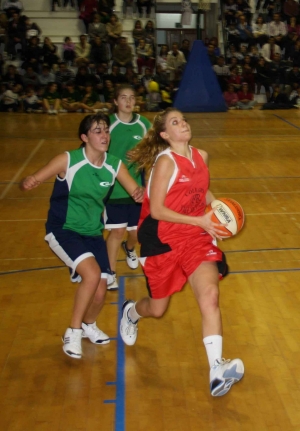 Acaba de terminar el partido de los chicos con un Villaeuropa que se había dejado todo en la pista, pero que no pudo con el tremendo potencial de los Halcones de Estudio Pero en en el repleto Star Pavillión aún queríamso má baloncesto , más espectáculo. Hubo espectáculo... y del bueno. Otra vez se volvíaan a ver las caras Villaeuropa Stars y Nile Faraones. Por las visitantes había ganas de revancha de la derrota sufrida por los chicos hace una semana, por su parte las Estrellas buscaban el doblete Las gradas completas, no cabía ni un alfiler. Los aficionados de uno y otro equipo gritaban sin parar animando a la victoria a sus chicas. Nadie quería perder, pero esta vez le tocó al Nile Faraones. No pudieron hacer nada ante el vendaval de juego de las chicas del Villaeuropa, que fueron de menos a más y no dieron opción alguna a sus rivales. Los espectadores disfrutaron de principio a fin. Primer Cuarto : Arranque frenético ¡Balón al aire! Las Faraones a un nivel altísimo y a una velocidad de crucero, querían sorprender a las locales desde el minuto 1. Y así lo hicieron, cuando Marina Romero metía un triple espectacular para decir: “Aquí estamos nosotras y vamos a por la victoria”. Pero Villaeuropa Stars no se vino abajo y Gema Alonso dio al botón para que la máquina (su equipo), empezara a funcionar. Y así fue. Suyos fueron 7 de los 9 puntos que marcaría el equipo en este cuarto. Leticia Martín y Marta de la Torre serían sus escuderas.l Nile resistía gracias a las canastas de Marina Romero y a la gran lucha y derroche de fuerza de Cristina Fernández. Segundo Cuarto: Villaeuropa pisa el acelerador Después de lo visto en el primer cuarto, el Nile cambió la defensa zonal por la individual, para intentar así frenar a las chicas del Villaeuropa. Lo consiguieron inicialmente, pero se olvidaron de atacar y sólo pudieron conseguir un punto, gracias al tiro libre de Marina Romero. El nerviosismo les jugó una mala pasada y perdieron muchos balones. Villaeuropa comenzaba a aumentar su diferencia en el marcador y sobre todo, en el juego. Lucía Rey capturaba todos los rebotes ofensivos y anotaba con una facilidad pasmosa, sabía que era superior debajo del aro. Sandra Pedraza se iba en los contraataques con una velocidad superlativa, anotando varias bandejas de calidad y ofreciendo segundas jugadas a sus compañeras. Gema Alonso, seguía a lo suyo, anotar, anotar y anotar sin parar. Sus driblings estaban volviendo loca a la defensa del Nile. Se empezaba a romper el partido tras el segundo cuarto (22-8). Tercer Cuarto: Puro baloncesto Tras el descanso, Nile volvía a salir imponiendo un ritmo fuerte, pero la “gasolina” se les acababa en pocos minutos. Marina Romero cogía la responsabilidad como líder de su equipo, secundada por una Carolina Fresneda plena de intensidad en los rebotes ofensivos. Que buen manejo de balón tiene esta jugadora, tanto con la mano derecha como izquierda. Y Villaeuropa estaba pasando un bache. Se relajó y se confió un poco. Además, Leticia Martín se iba al banquillo renqueante por su tobillo, tras una mala caída. Sólo fue un pequeño susto y al rato se incorporó al equipo. El equipo espabiló y volvió a retomar el buen camino. El show comenzaba. Marta De la Torre y Gema Alonso empezaban a deleitar al público con su juego combinativo. Vaya dos jugonas, la gente no para de aplaudir. Como estaban disfrutando, se les notaba. Último Cuarto: Nile lucha hasta el final Empezaba el último y definitivo cuarto. Y comenzaría con una acción espectacular de Ana Isabel Suárez, dejando una “bombita” al más puro estilo de Juan Carlos Navarro. Que elegancia de acción y con que calidad anotó la base del Villaeuropa. El equipo sabía que era el momento de sentenciar el partido y cambiaron a una defensa individual, jugadora por jugadora, con mucha presión. Y les funcionó a la perfección. A Nile le costaba mucho esfuerzo atacar la zona defensiva de Villaeuropa y su cansancio ya les hacía mella en el juego. Sólo un triple de Marina Romero les hizo creer en la remontada, pero se quedó ahí el pensamiento. Villaeuropa volvería a poner en funcionamiento la maquina. Su líder, Gema Alonso, seguía derrochando calidad en todas las jugadas en las que participaba. No se cansaba de anotar canastas de todos los colores y desde todos los sitios. ¡Que crack!. Animó al resto de sus compañeras que también rindieron a un nivel altísimo. Leticia Martín luchaba una y otra vez, no permitía un respiro a las rivales. Recuperando mil y un balones. También Marta de la Torre seguía rayando casi la perfección, llegando a sumar 15 puntos en momentos importantes. Un triple de Gema en los minutos finales acabó definitivamente con las esperanzas faraónicas. Pitido final y las chicas de Villaeuropa festejaban su gran victoria en su debut de la Copa Colegial ABC. Su entrenadora sonreía, orgullosa del trabajo bien hecho. Los dos equipos se saludaron deportivamente. ¡Qué grande es el baloncesto colegial ! Así terminaba un partido para el recuerdo. Y para cerrar esta crónica, hablemos de dos grandisimas jugadoras , la Faraona Marina Romero, que realizó un partidazo (10 puntos,) y mantuvo a su equiposiempre en la pelea y por supuesto , la Gema de Villaeuropa, de apellido Alonso, cuyos sus 23 puntos hablan por sí solos. Es espectacular como juega a esta chica ¿ La veremos en el McDonald´s All Star? (Pd: En breve fotos)