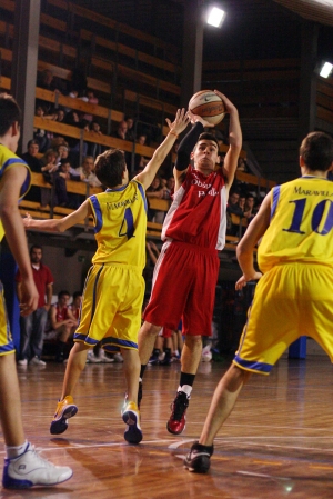 El colegio Maravillas se contagia del fervor que la Copa Colegial ABC produce en los jóvenes jugadores de baloncesto. A las cinco y cuarto el pabellón estaba tranquilo, pero era la calma que precede a la tempestad, los muros del colegio iban a temblar… Pronto empezaría el espectáculo, las gradas se iban poblando a medida que se consumía la cuenta atrás del partido. La tensión se notaba en el ambiente. Se respiraba un ambiente de gran partido. A falta de unos minutos para las seis de la tarde, con los nervios hirviendo en los jugadores de ambos equipos, una espectacular presentación de ambas plantillas y en un abrir y cerrar de ojos. Balón al aire!! Las gradas animaban a sus respectivos equipos desde el primer momento, el ambiente iría caldeándose según se consumían minutos. En los primeros compases del partido ambos equipos eran puro nervio; los chicos de Maravillas, consiguieron que los de Perelló no se sintieran cómodos, provocando muchos balones perdidos, innumerables errores en el tiro exterior. Dejaba un parcial de 0-4 en los primeros 3 minutos, pero dos buenas acciones los de amarillo (un triple y un robo con contraataque) daba la vuelta al marcador y ponía el 7-4 en el marcador. El cuarto seguía con grandes despistes por ambos bandos, aunque la intensidad defensiva subió y se produjo un intercambio de canastas. Sería Miguel García, que con otro triple estratosférico (como con el que ganó la semana pasada el partido a Joyfe) sobre la bocina del final de cuarto dejaba con un 9-9 en el luminoso. Los Amarillos salieron con el cuchillo entre los dientes, y ante la salida sin espíritu de los visitantes, no les dejaron respirar ni un segundo en el inicio del segundo cuarto, un parcial de 9-0 que el entrenador Peñaranda paraba acertadamente con un tiempo muerto para hacer reaccionar a sus chavales. Y así fue, la salida del banquillo hizo que Miguel Martín robara un balón y saliera directo hacia la canasta anotando, sacando la falta a su rival y haciendo ver esa Furia Roja de los chicos de Perelló. Pero otras dos buenas acciones de Roberto Rodriguez hacían elevar el parcial a 13-3. Los locales se habían puesto el mono de trabajo, y con una férrea defensa que les permitió armar rápidos contraataques, se habían colocado 10 arriba en el marcador. Lo que está claro en esta competición es que ningún equipo se rinde y Obispo Perelló, una semana más es el mejor ejemplo, y con 12 puntos en apenas dos minutos encadenando triples, robos y velocidad con Miguel Martín y David Sanz al mando. Los minutos restantes con un intercambio de canastas por ambos bandos, dejó un 24-29 para los chicos de Perelló al descanso. Un tercer cuarto de continuo ir y venir de ataques por los dos bandos, un arrebato de buen baloncesto, rebote y contraataque, pase y corte, pick and roll… cosa que le beneficiaba a Perelló hasta que dos buenas acciones del local Sergio Sánchez hizo acercarse a su equipo a sólo dos puntos (31-33) y en ese momento fue donde la defensa de un Alejandro Blázquez encendido y un estelar Miguel García con 7 puntos seguidos devolvía la tranquilidad a Obispo Perelló he hicieron decantar la balanza hacia el lado visitante, en este cuarto, por el momento… La cosa estaba clara, querer es poder, y tras las palabras del entrenador Triano, Maravillas dedicó las fuerzas que le quedaban en apurar el marcador a base de tesón, garra y coraje. La excelente actitud de los chicos con la estrella local, Roberto Rodriguez, al frente de la nave, volvió loca a la grada que se volcó en sus jugadores. Sentía que los cinco que estaban peleando en la cancha, reunían las fuerzas de sus compañeros que animaban desde el banquillo. Llegaron a situarse hasta cuatro puntos por encima en el marcador (44-40), en apenas 3 minutos habían anotado 11 puntos y con todo de cara para llevarse un partido en el que Perelló parecía noqueado. Pero aun no se acaba aquí esta locura; todavía tenía que salir a relucir la Furia Roja, como era de esperar, Obispo Perelló reaccionó, ¡y de qué manera! No podía ser de otra forma, David Sanz, un autentico “jugón”, cogió las riendas de su equipo, clavó dos triples en un minuto y se metió la victoria en el bolsillo. Un carrusel de tiros libres decidió el final del partido, en el que Obispo Perelló algo más acertado supo mantener la distancia y llevarse la victoria a casa. Fue un encuentro apasionante, muy competido y muy bonito de ver; ambos equipos mostraron su identidad y jugaron según sus valores, ambos, de manera extraordinaria. ¡ Qué grande es la Copa Colegial ABC! Y próximo viernes ante los Tigres de Santa María del Pilar con los cuartos en juego… ¡¡Va a ser de locos!!