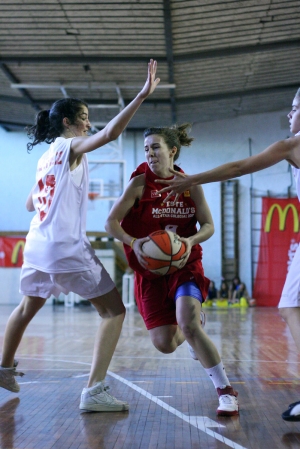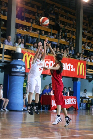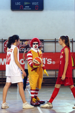 Era el día, el McDonald´s All Sttar Colegial ABC, el Partido de las Estrellas Colegiales , se alzaba el telón, en un escenario de auténtico lujo, una de las chanchas legendarias del baloncesto colegial madrileño, el Gimnasio de La Salle Maravillas, que para la ocasión registraba un lleno espectacular y lucia su mejores galas . Sobre el añejo y cargado de historia parqué, los mejores jugadores colegiales de la Copa Colegial ABC . Este contra Oeste. Rojos contra blancos. Estaba a punto de comenzar el quinto enfrentamiento de una serie., Este vs Oeste que los segundos dominan por 3 a 1…y que en sus cinco años de vida ha creado una bonita y sana rivalidad colegial Calentamiento Los jugones y jugonas de cada bando dna muestras de su clase. El primer y tercer cuarto lo jugarán las chicas, el segundo y cuarto los chicos. El marcador común La grada repleta, expectante por ver espectáculo del bueno. Los jugadores con unas ganas locas de que comience ya. La música del DJ anima más si cabe estos momentos previos. Presentación de los jugadores, al más puro estilo ABC, con pasillo de las Cheersleaders de Alameda de Osuna y primera gran ovación de la tarde para el Oeste. A continuación sale el Este Y por supuesto Ronald McDonald, el primero en apuntarse a esta fiesta del baloncesto colegial. No se salva del pasillo ni Alberto López, el presidente de la Asociación de Baloncesto Colegial. Antes del inicio del partido, se entrega el Premio Referentes del Baloncesto Colegial a David Sanz de Obispo Perelló, y a Manuel Martín, de Valdeluz, dos jugadores, dos números diez que, con su actitud en la cancha, han sido auténticos referentes de los valores que pretende transmitir esta Copa y el baloncesto colegial en general. Como ellos mismo nos recuerdan, “lo importante es que prevalezca el respeto tanto dentro como fuera del campo, y mantener el espíritu sano de juego, se gane o se pierda“. ! Después de estos prolegómenos, da por fin comienzo el Partido! Pirmer Cuarto: Máxima Igualdad El Oeste empieza fuerte y con los primeros seis puntos en su casillero, deja claro que quieren ganar el partido, por mucha exhibición que sea a priori un All Star. Así, chicas del Oeste, perfectamente dirigidas por Andrea Prieto y Masú Gómez se hacían fuertes en la pintura, con la jugadora Lancer Maria Aranguren imparable, consiguiendo anotar desde posiciones cercanas al aro, demostrando con su juego colectivo que habían aprovechado muy bien el All Star Training Session Por su parte, el Este recurria al tiro exterior , sumando a base de triples, dos en este tramo de Aurora Mínguez y otro de Belén Morón, para no permitir irse a sus rivales. Eran dos estilo opuestos, pero , ambos muy efectivos por el momento. Y con el intercambio de canastas que realizan ambos equipos, el marcador no deja de estar igualado, las jugadoras lo están dando todo sobre la cancha y el público se lo pasa en grande . Un última canasta tras rebote ofensivo de Aranguren a falta de escaso segundos pone a las del oeste por delante…Y acaba el cuarto con un ajustado tanteo de 15-16 para el Oeste. Mientras las chicas descansan del esfuerzo realizado, y lo schicso se preparan sale Ronald McDonald al centro de la pista rodeado de mini jugones . Es la Presentación de la PequeCopa Colegial 2011. Una presentación divertida y original de los equipos, con los peques haciendo entradas a canasta. Recordar que la PequeCopa de celebrará el próximo día 15 de mayo en el Instituto Veritas. Serán 56 equipos, casi setecientos chavalines de minibasket en acción, algo de locos. Todo el mundo está invitado a acudir y disfrutarlo. Segundo Cuarto: El Oeste toma ventaja Intensidad máxima e igualdad total al principio ¡Los chicos tenía muchas ganas y lo están demostrando! Javier Lugris anota desde la pintura dentro, para adelantar a los de rojo, pero,¡ menuda racha de Juan Llorente y el local Roberto Rodríguez! Desde dentro y desde fuera , entre ambos se combinan para conseguir una racha de trece puntitos, cerrada una increíble entrada de Llorente tras romper , mejor dicho destrozar, la cintura a su defensor a su defensor y conseguir un fantástico 2+1. Aunque un triplazo de Mike García y, de nuevo, la garra de Lugris en al pintura puedan controlar los daños . Pero el Oeste ha pisado el acelerador y se quiere marchar en el marcador, siete arriba. Tiempo muerto pide el Este para enfriar la acometida rival Pero lo que no se enfrío fue el espectáculo. Era el turno para las Cheerleaders de Alameda de Osuna. Increíble coreografía. Mejor que los de Glee. ¡¡ Menudo nivelazo!! Pero reacciona el Este. ¡Vaya jugadón de Lopez.! ¡SuperLopez! Se recorre el campo, se escapa de cuatro adversarios en su camino al aro, y encima consigue el adicional. Jugada de auténtico All Star. El Este se vuelca en ataque. Otra genialidad de De Juan, que consigue una canasta inverosímil, empata el partido de nuevo. La grada se lo está pasando en grande. Y los de rojo mantiene la ofensiva. Con Iñigo Laucirica poniendo intensidad en ambas zonas, con el caimán Nacho Sánchez apareciendo para conseguir un 2+1 y con Javier Lugris dominando el rebote ofensivo y forzando personales, las tornas han cambiado. Es un espejismo .De nuevo Llorente tira de su equipo, y rompe con extrema agilidad a su par para anotar en bandeja y romper la sequía de su equipo. Alex Ortiz entra en escena y demuestra que sabe meterlas de colores, y con dos triplazos consecutivos hace rugir a la grada. Jugada de Llorente de altos vuelos. 2+1 y dejando el balón a la altura del aro. Vaya brinco. Pero Mike García no quiere canastas fáciles y tapona el siguiente ataque ante el rugido de la afición. Y de nuevo canastón de Llorente. Vaya crack. ¡Y qué baloncesto estamos viviendo! Pero el Oeste ha estado más acertado y aprovechando los contraataques con transiciones muy rápidas anota con facilidad y consigue despegarse acabando el cuarto con un 39-46 a su favor en el marca