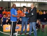 Moses Ehambe, jugador americano del DKV Juventud de Badalona, se pasó por el Colegio Sagrat Cor Diputació para seguir la emoción de la Copa Colegial. ...
