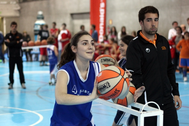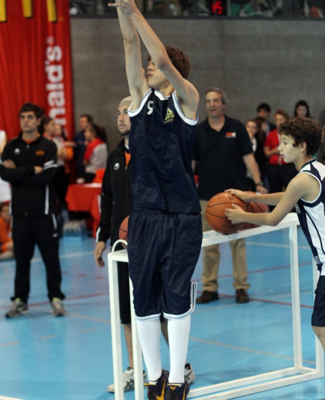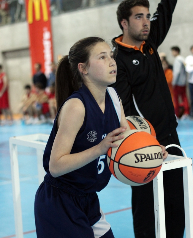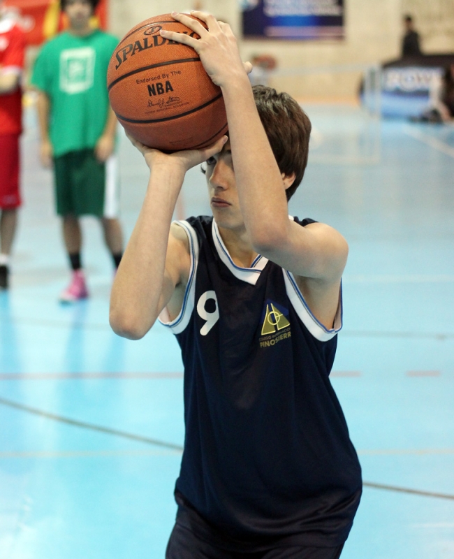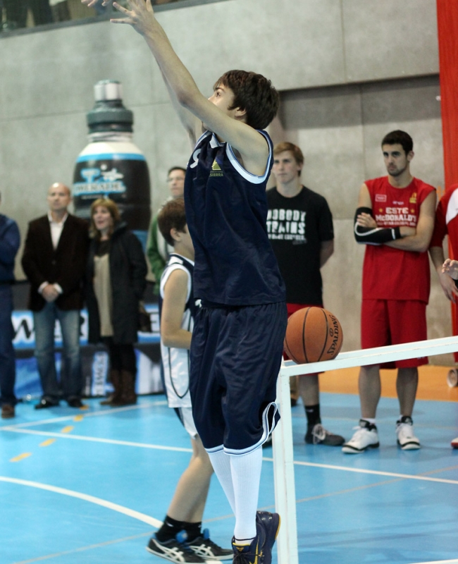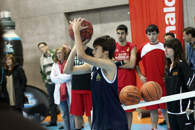 Esto es el Spalding Concurso Colegial de Triples, una prueba durísima que pone al límite las muñecas, los nervios y la concentración de los participantes en su búsqueda del título que les corones como reyes colegiales del triple