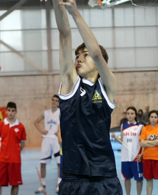 En la final masculina, una año después de nuevo Alex Ortiz, posiblemente el mejor tirador “en juego” de la historia de la Copa Colegial ABC, volvía a tener enfrente a un Novillo…Pero , no , no estaba Miguel Novillo el jugador que se había hecho con los dos últimos Concursos. Enfrente estaba Mario Novillo, su hermano , un chaval de 14 años …
