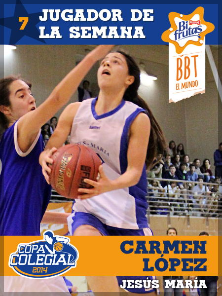 Carmen López, conocida por SuperLópez en las crónicas de Luis Javier Benito, fue el factor decisivo para que Jesús Maria consiguiese el hito histórico de meterse en la Gran Final Colegial al batir a Pilaristas. Liderando a las Leonas de Thevenet, la sensacional playmaker , realizó un partido impecable con 27 puntos, 4 rebotes y una sensacional asistencia, dirigiendo, penetrando, robando balones… estuvo en toda partes, y en todas partes lo hizo perfecto, mejor dicho; histórico.