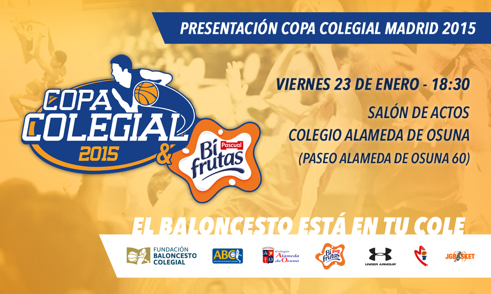 Este viernes 23 de enero se presenta la Copa Colegial & Bifrutas Madrid 2015. La cita es en el salón de actos del Colegio Alameda de Osuna a las 18:30.