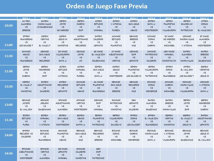 Y este es el Orden de Juego de la Fase Previa:
