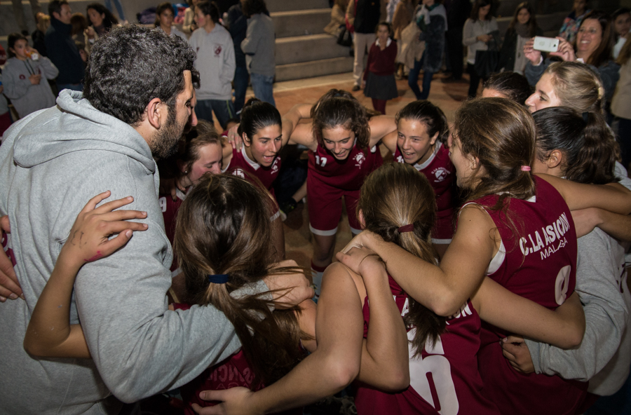 Mientras Paula se retira de la pista entre aplausos y gritos de ánimo, dos compañeras la flanquean para que no se sienta sola. Ocupa su lugar en el banquillo y vuelve a romper a llorar. No hay tiempo de lamentarse, porque llega el descanso del encuentro a los pocos minutos. Asunción vence 31-15 y todas las compañeras se unen durante el calentamiento en un corrillo para trazar las líneas a seguir en el segundo tiempo. Está claro que la motivación personal va por delante que la deportiva en ese momento: Ganar por su compañera. Uno de los que estaba en el público era José Cabra, coordinador de Asunción, que vivió desde fuera ese momento que todos recordarán pasa siempre. “Sentimos un nudo en el pecho ya que sabíamos lo que ella en ese momento estaba sintiendo. Lloraba porque se sentía incapaz de dar mas porque su cuerpo no se lo permitía, y cuando se retiraba al banquillo ella ya sabia que no podía volver a la cancha en la final”. Los sentimientos, dentro y fuera de la pista, eran los mismos. Comunión grada-equipo. Comunión jugadoras-colegio.