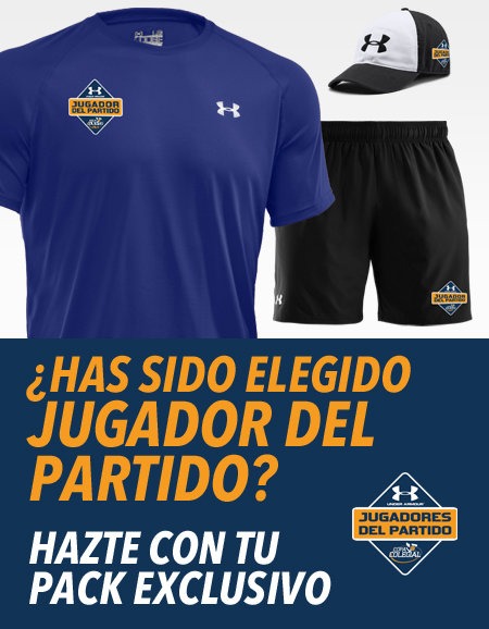 Sólo los elegidos Jugadores del Partido podrán conseguir su pack de Under Armour personalizado, formado por una camiseta, un pantalón y una gorra, por solo 49.90€, y que podrán recoger en la tienda indicada en su ciudad, una vez rellenado el pedido.