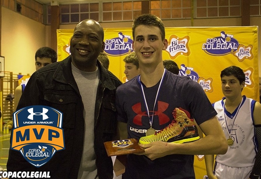 La Gran Final de la Copa Colegial & Bifrutas Sevilla 2015 puso el broche perfecto para el cierre de una competición ilusionante. Un torneo de algo más de un mes de duración en el que ha destacado el Colegio Alemán, en la categoría masculina, y su absoluto líder, Álvaro Leites. Una estrella que se ha hecho mayor con el paso de los minutos y que ha demostrado tener todo lo necesario para triunfar en el baloncesto. Leites es el Mejor Jugador Under Armour de la competición. Recibió de Mike Smith su premio, un fantástico par de zapatillas Under Armour junto con una camiseta y una placa conmemorativa, y lo que es más importante, el reconocimiento de todo un pabellón que cayó rendido a sus pies.