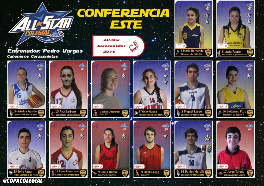 Estos son los cromos de las 28 estrellas que brillan en el firmamento Colegial de Aragón, los participantes en el All Star Colegial 2015 de Aragón.