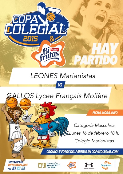 Ya el lunes llegará el estreno de los Campeones 2014: Leones Marianistas. Y atención al hueso duro de roer que les ha tocado enfrente: unos Gallos Lycee Français Molière que sorprendieron a todos con un partidazo en la primera jornada ante Tiburones La Salle Gran Vía. Tendrán que entrar con las pilas puestas los Daniel Morelli, Andrés Herrero o Javier Midón, porque si no lo dan todo, los Gallos querrán dar la sorpresa y hacer que los Leones caigan por primera vez en tres años. Difícil destacar individualmente a nadie en los Gallos, que funcionan muy bien como conjunto. Sirva la valoración de +26 de Daniel Sánchez o de +22 de Gonzalo Zubialde en su primer partido. Sin duda, será el partido más destacado de la jornada.