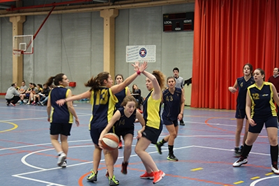 Un gran último período de las locales permitía a las Tiburonas de La Salle llevarse la victoria en el partido inagural de la Copa Colegial 2015 de Aragón. El cuarto comenzaba con una canasta de Laura Abadías para las visitantes, pero 5 puntos de María Hernando ponía a las locales con una ventaja de 5 puntos. Desde ahí hasta el final del partido, las chicas de Julio Clérigue solo lograrían dos puntos de tiro libre de Claudia Cerdán y Teresa Escó, mientras que las entrenadas por David Fleta aumentaron su ventaja con dos canastas de Belén Solanas y dos tiros libres de Puerto Artal.