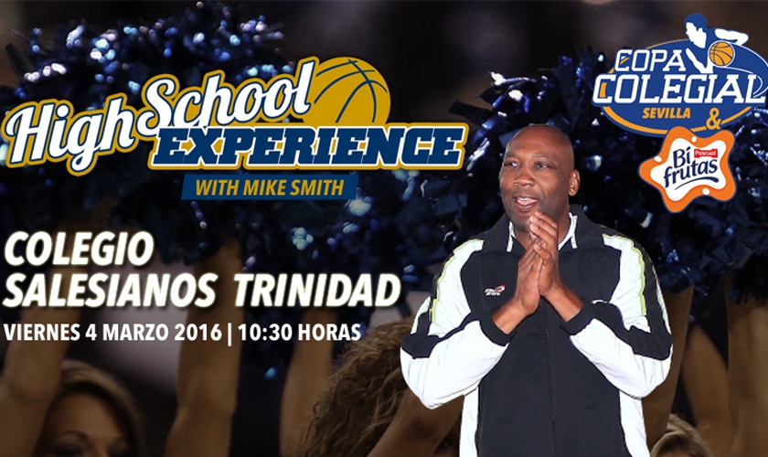 ¿Te imaginas poder estar en una clase magistral de basket con toda una estrella de este deporte? Deja de imaginar. Los alumnos del colegio Salesianos de la Trinidad, en Sevilla, podrán disfrutar del primer High School Experience de la Copa Colegial & Bifrutas Sevilla 2016. ¡Eventazo! El protagonista será Mike Smith, una leyenda del baloncesto en España y en Europa. El viernes 4 de marzo de 2016 a las 10:30 horas tienes una cita. El colegio Salesianos de la Trinidad será una absoluta fiesta en una jornada memorable para enmarcar en el calendario de actividades del centro.