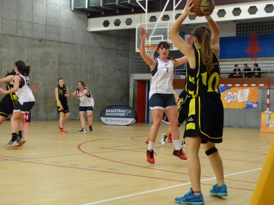 Tras la reanudación, las chicas de Egibide se mostraban imparables. Tan sólo dos minutos les bastaban para, con canastas de Uxue Aldama y Garazi Pérez de Gereñu, un triple de Ainhoa Fernández de Matauko y dos imponentes tapones de Andrea Gomes, alcanzar la máxima diferencia hasta el momento, 18 puntos.