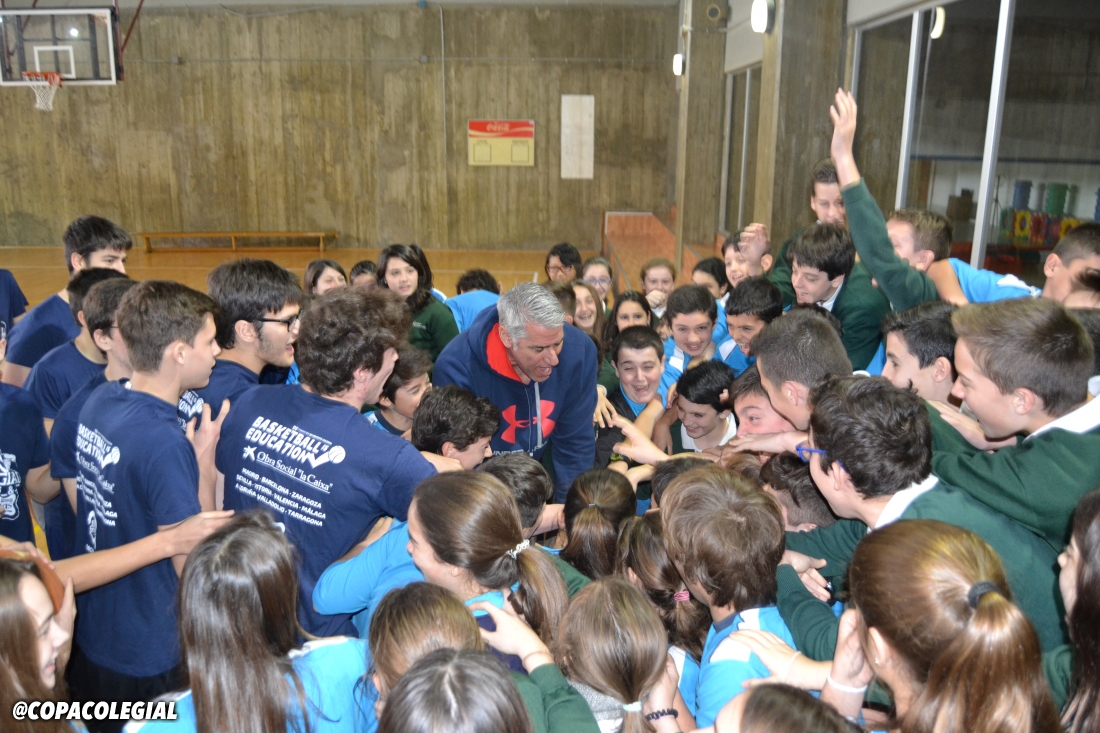 Imágenes de la visita de Joe Arlauckas al colegio Teresiano del Pilar de Zaragoza, donde departió con los alumnos y se presentó el equipo de los Tigres de Copa Colegial, y del High School Experience, celebrado en el colegio Sagrada Familia, ambos eventos del martes 9 de febrero de 2016.