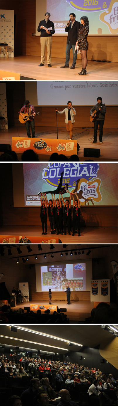 La Gala, conducida por la voz del baloncesto en Zaragoza de Tiempo de Juego de Cope, Anna Abad y por los responsables de Copa Colegial en Zaragoza, Francisco Ferrán y Nacho Bonilla, tuvo momentos para el recuerdo de la edición de 2015, cuando vimos el vídeo oficial de la Copa Colegial Aragón 2015, así como en la entrega de los Diplomas a los Mejores Quintetos de la pasada edición. Durante el evento actuó el grupo zaragozano La Señal de Flint, autores de “Héroes”, canción oficial de Copa Colegial Zaragoza, así como el grupo de baile del colegio Corazonistas La Mina, que sirvió como presentación del concurso colegial de cheerleaders que se llevará a cabo este año.