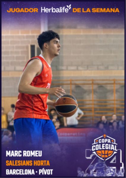 En categoría masculina, duelo de Marcs: uno de Salesians y el otro de Sant Gervasi Mollet. Pues bien, aunque le costó más que a su homóloga en el femenino, Marc Romeu se impuso en la votación de Jugador de la Semana gracias a sus numerazos en el duelo de octavos de final que enfrentó a Bosco contra Plafarreras. 29 puntos, 2 rebotes y 2 asistencias, siendo además decisivo en la 2ª mitad. Tremendo.