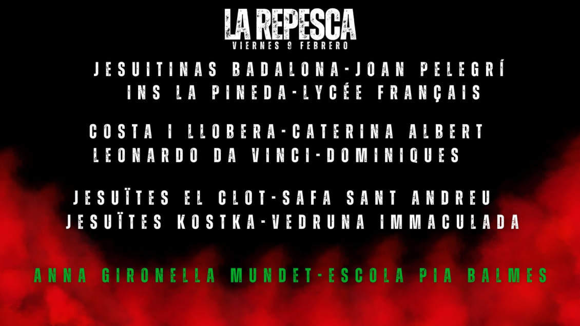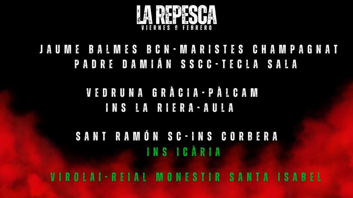 Llega la primera repesca de la historia de la Copa Colegial Barcelona 2024, que todo apunta que será un éxito rotundo. Este viernes 9 de febrero de 16.30-20.30 se disputará la repesca donde dos equipos volverán a vivir la mejor competición escolar de Europa. Tras el sorteo realizado esta noche así han quedado los cuadros: