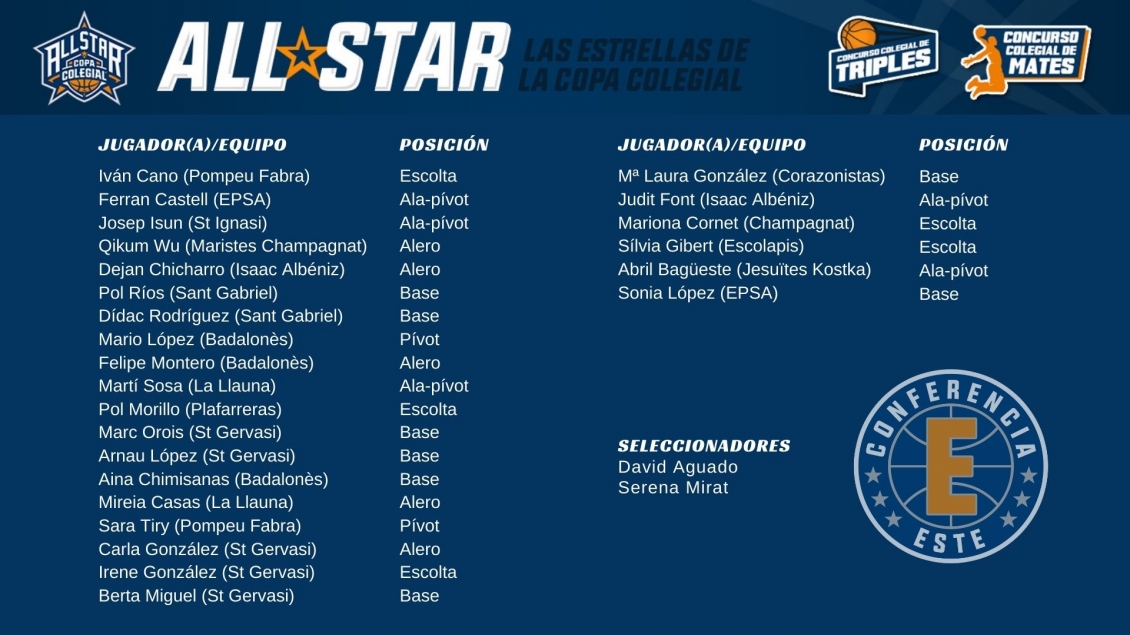 Una jornada de lujo nos espera en la Copa Colegial donde, desde ya, los seleccionadores tienen una importante tarea. Elegir a los 16 jugadores por Conferencia (8 chicos y 8 chicas) que disputarán este gran match. Estas son las listas de preselección: