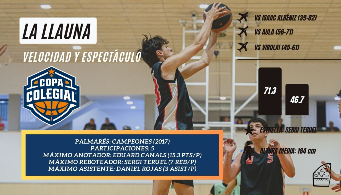 La Llauna tiene un equipo muy completo con jugadores destacados en todas las posiciones. Algunos de ellos como Edu Canals o Pau Majoral ya perdieron la semifinal de la temporada anterior en La Plana de Badalona contra Sant Gabriel, por lo que ahora jugarán en otras pistas, delante de su cole y pertenecientes... al Badalonès. El Claret-La Llauna será un partidazo y más viendo que los 'All Blacks' llegarán con toda la artillería que les ha permitido avanzar por 5ª vez a la antesala de la final. Sergi Teruel, Adrià Bellavista y compañía ganaron mostrando una clara superioridad contra Isaac Albéniz en el derbi de Badalona en 1ª ronda (39-82), pero tuvieron problemas con sus dos siguientes rivales, cerrando los encuentros entre el final del 3º cuarto y los prolegómenos del cuarto periodo. Contra Aula se impusieron por (56-71), mientras que contra Virolai acabaron +16 (45-61) en un choque más ajustado de lo que se reflejaba en el marcador.