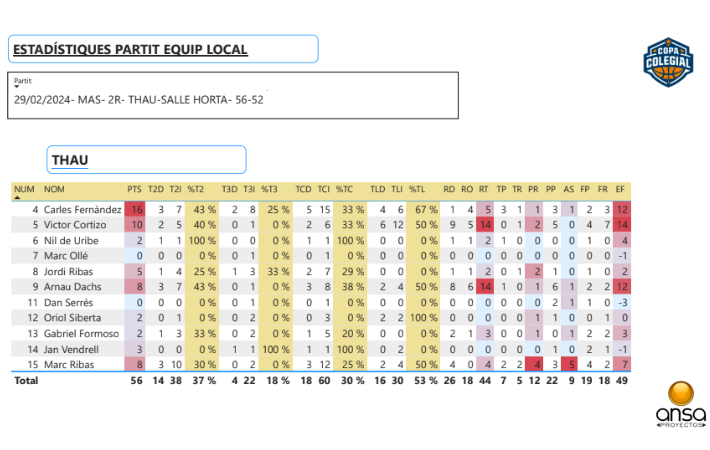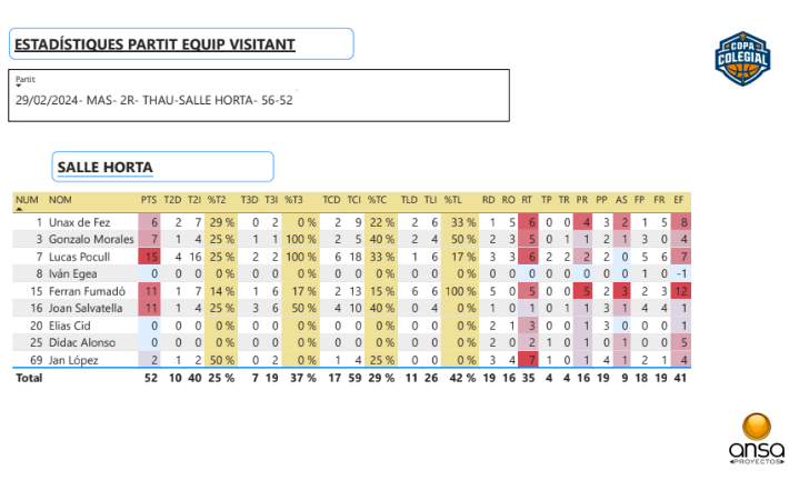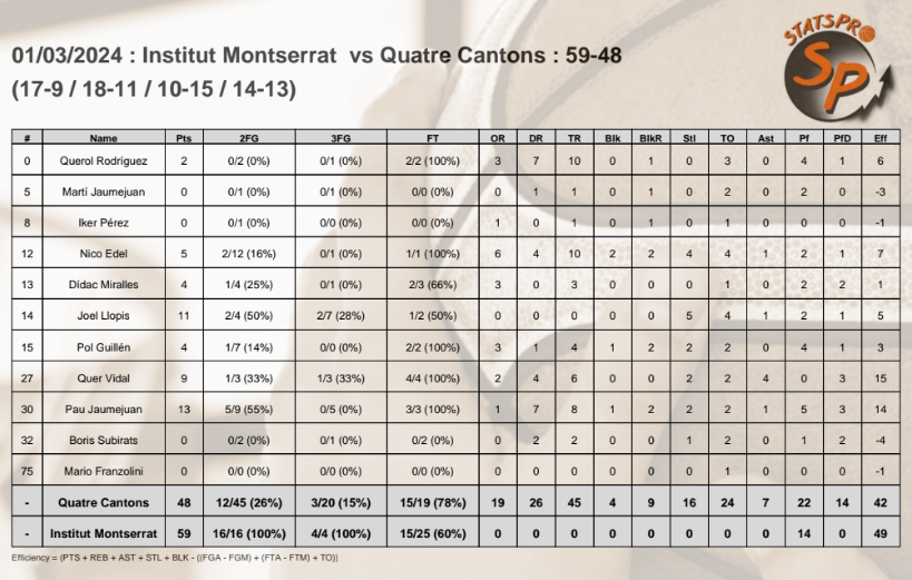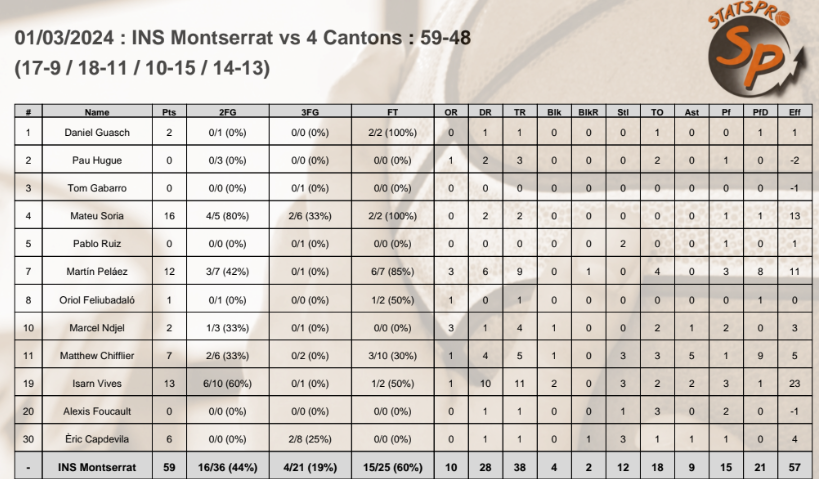 Una semana más, nuestros colaboradores de estadística avanzada 5D nos ponen al día de las mejores estadísticas de dos partidos top que hemos visto esta semana. Se trata del Institut Montserrat VS Quatre Cantons y del THAU VS La Salle Horta. Allá van: