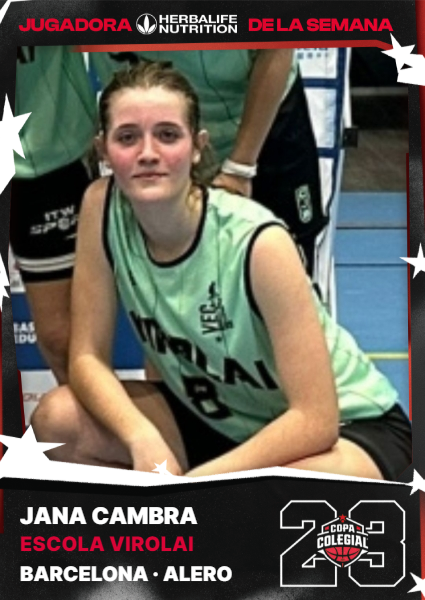 Por su parte, Jana Cambra era una de las incógnitas de Virolai. A diferencia de algunas de sus compañeras, que ya habían jugado hasta 5 partidos de la Copa Colegial, ella era una novata. Pero fue una muy buena novata: lo hizo tan bien que se llevó el MVP gracias a su tesón, su garra y sus 21 puntos. Voló en el triunfo de las de Gràcia frente a European School (16-79).