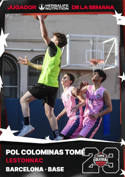 Terminada ya la segunda jornada de competición y con los resultados de las encuestas de Instagram y la web, Pol Colominas ha sido elegido como mejor jugador Herbalife de la semana. El base de Lestonnac, que cursa 1º de Bachillerato en el centro de Paseo de Gràcia, se marcó una actuación memorable en su debut en la mejor competición de baloncesto escolar de Europa. Con 27 puntos, 2 rebotes y 3 asistencias encarriló la victoria de los suyos, que cogieron el billete para octavos de final tras imponerse al Plafarreras de Lluís Trenchs por 62 a 50.