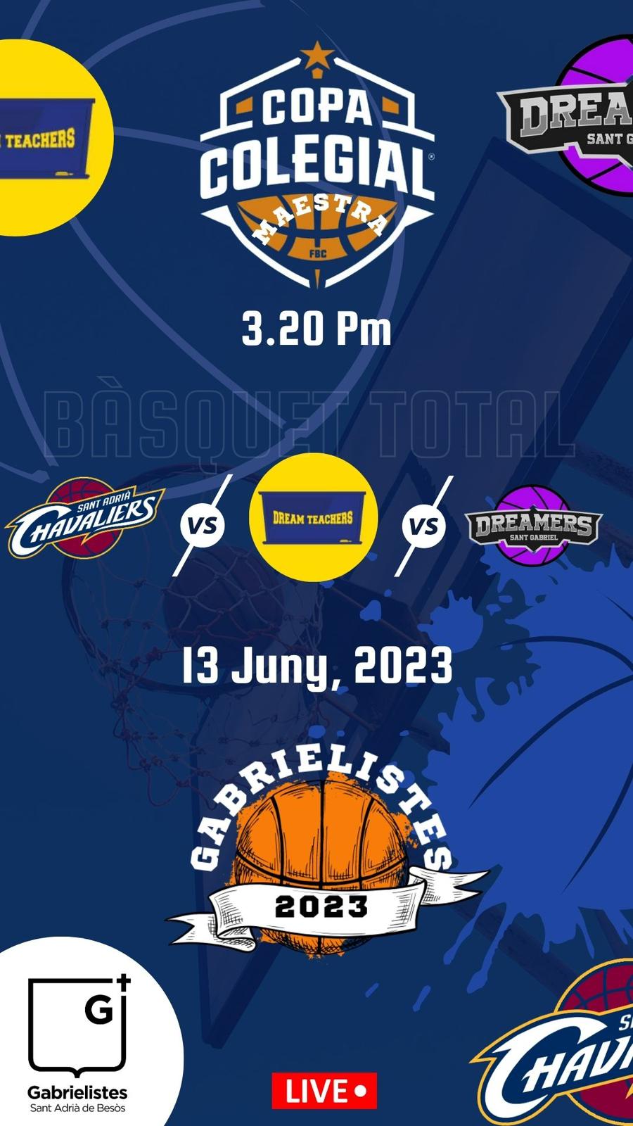 Eventazo el que nos espera esta tarde a partir de las 15:20 horas en el que, en el equipo de profesores, apodados como 'Dream Teachers', veremos a caras tan relevantes y reconocidas en la Copa Colegial como Marc Talaverón (ex jugador y propietario de un TFG sobre la Copa Colegial), David Aguado (el entrenador más laureado de la historia de la Copa Colegial), Lluís Palet (entrenador masculino de la Copa Colegial 2023), Jesús Checa (profesor de gimnasia y campeón como entrenador de las Dreamers en 2019) o el mismísimo fotógrafo de la Copa Colegial y también profesor de SantGa Manu Rueda.