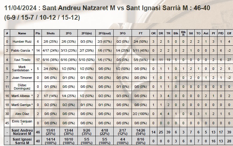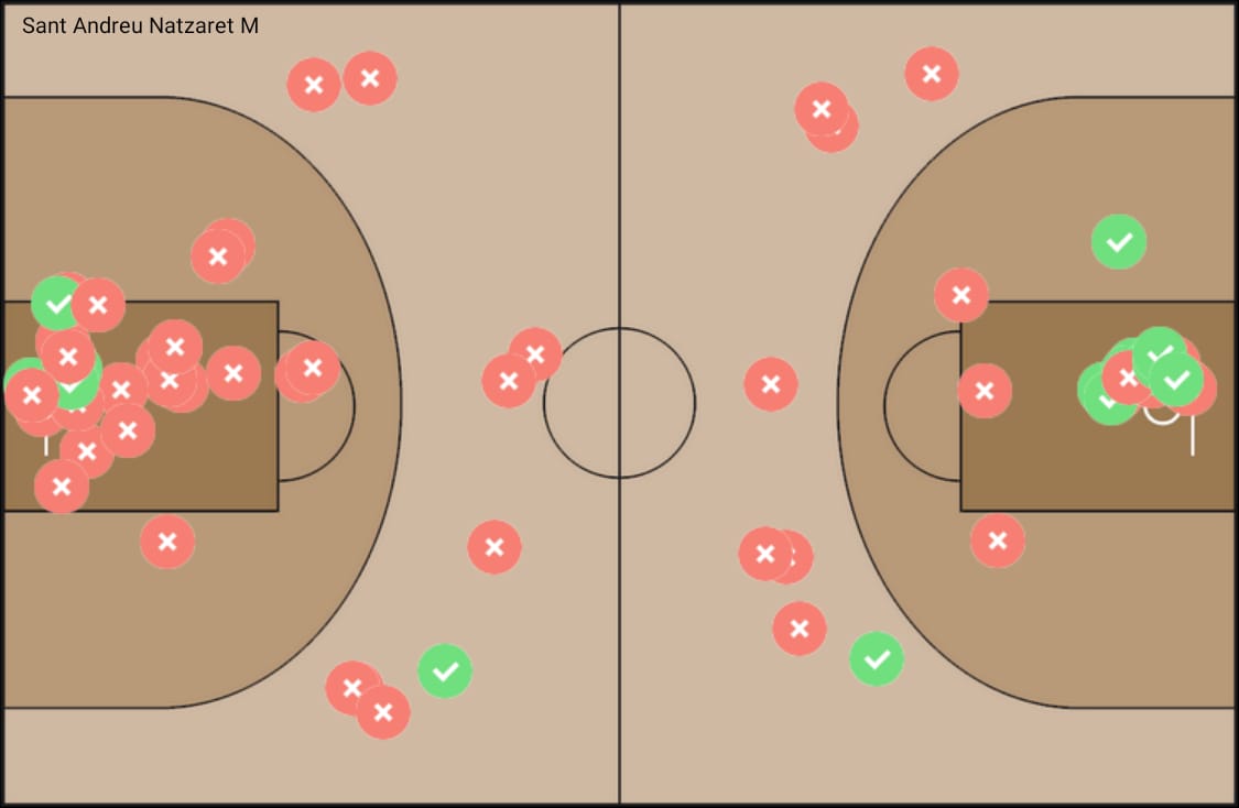 Un día más os traemos las estadísticas avanzadas en 5D de ANSA, hoy con gráficos brutales y muy dinámicos del partido disputado ayer entre Sant Andreu Natzaret y Sant Ignasi Sarrià en el pabellón Països Catalans en Badalona. Partido de cuartos de final masculino con victoria para los locales por 46-40.