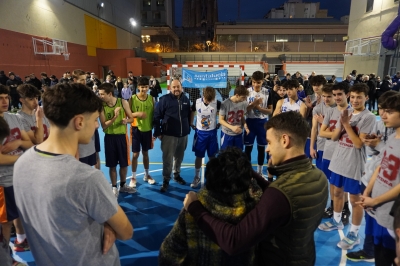 Ambientazo y llegaba el momento que muchos estaban esperando: el huddle inicial de Iaia Lola, la abuela más simpática, amable y morrocotuda del campeonato surgía efecto. Con un improvisado discurso poniendo de relieve la importancia de los valores del baloncesto y de otros deportes -como la natación- que pueden ayudar a los players a desenvolverse mejor en el terreno de juego, iaia Lola provocaba los primeros vítores del encuentro. “Estáis en la mejor competición escolar de Europa. Quiero agradecer a todos los padres, madres, hermanos y amigos que vienen aquí a animar a sus colegios. Sois sensacionales. ¡Viva la Copa Colegial!”, expresaba Lola a la que no le pesan para nada sus 93 años y medio. Pintora, escultora, deportista en sus tiempos mozos y ahora una fan más de la Copa Colegial, ella misma ponía el punto final al speech de bienvenida y le cedía el testigo a Jordi Domingo, que lanzaba el balón al aire para inaugurar este bonito partido de dieciseisavos.