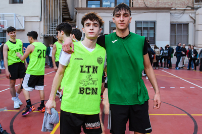 Balón al aire y Mario Núñez se encargaba de meter el primero y levantar a la grada local. Si ayer en el SantGa Arena tardamos hasta 6 minutos en ver el primer punto, los pupilos de Marc Vidal tardaban hoy solo 5 segundos. Segundos después, triplazo del mismo Núñez e inicio fulgurante de los locales. En Casp era su número 8, Diego Chies, que ya sabe lo que es ser MVP en esta Copa, quién se encargaba con un 2+1 de acortar distancias y poner en pie a la masiva marea verda que se había desplazado hasta Passeig de Gràcia. No solo habían tomado el fondo sur del patio sinó que además hacían un ruido ensordecedor. Hoy por suerte, ninguna vecina llamó a la Guàrdia Urbana para quejarse… seguramente los vecinos se han enganchado a la mejor competición escolar de Europa y vibran con la Copa desde los balcones. Es normal. Lestonnac con ventaja y cuando más apretaban los visitantes aparecían Raluy y Jan Arnau metiendo respectivamente dos triplazos desde su casa, poniendo 10 arriba a los de fosforito y cerrando el primer cuarto con los suyos disparados.