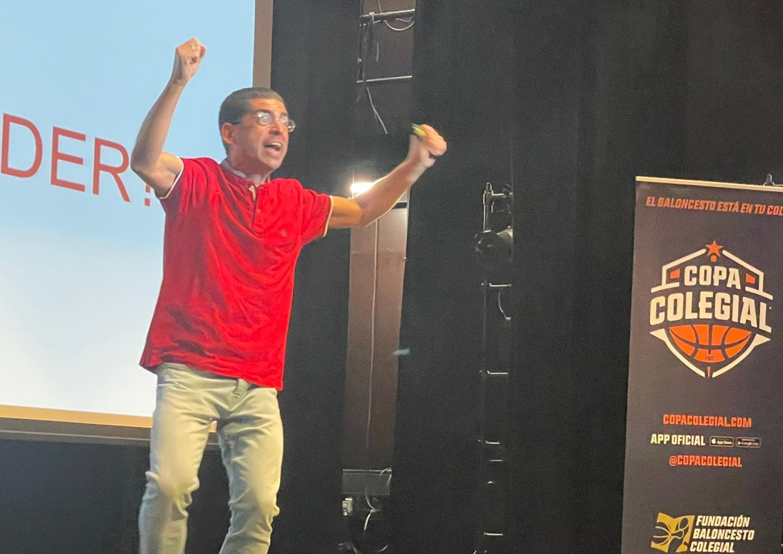 Viernes de altura en el Teatro Fernández-Baldor de Torrelodones. Álvaro Muelas estuvo con todos los integrantes de la familia del colegio San Ignacio de Loyola para una nueva formación de la Copa Colegial en Madrid. En esta ocasión, bajo el título, 'Tarde con Familias', el docente y árbitro oficial quiso impartir cátedra dando al entorno de los deportistas el lugar que merecen.