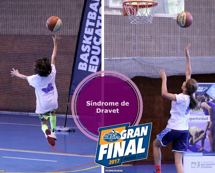 En el intermedio entre le primer y segundo cuarto, Ignacio Carrera de la Fundación Sindrome de Dravet, salió al círculo central , acompañado de la jugadora de San Agustín Manuela Santolaya, la MVP de la reciente Pequecopa y del benjamín de Maristas Chamberí, Ernesto Pérez, y después de hacer una exposición sobre la enfermedad y sobre la labor de la Fundación dio paso a dos entradas a canasta, dos “Canastas contra el Sindrome de Dravet” a cargo de Manuela y Ernesto…