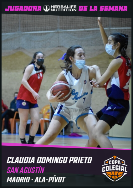 Claudia Domingo (San Agustín). Uno de los mejores duelos femeninos de lo que llevamos de edición en Madrid se pudo vivir en el colegio de la calle Padre Damián con una gran remontada de las Águilas y victoria en la prórroga tras empezar con un -12 en el primer período. Mucha explicación a ese triunfo se encuentra en el rendimiento cerca de los aros de una ala-pívot, nacida en el año 2004, que estuvo absolutamente bestial.