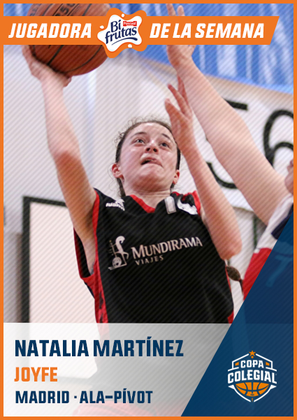 Hablamos de Álvaro Jiménez (Escolapios) y Natalia Martínez (Joyfe). El primero, absolutamente espectacular, ha liderado a los lobos a un camino histórico que les mete en la pelea por el estandarte. Con 19,2 puntos de media y más de 20 de valoración, el base ha demostrado toda su inteligencia a lo largo del torneo, y lo remató en semifinales: 27 tantos y 10 rebotes para ahuyentar a Arcángel con su aullido feroz.