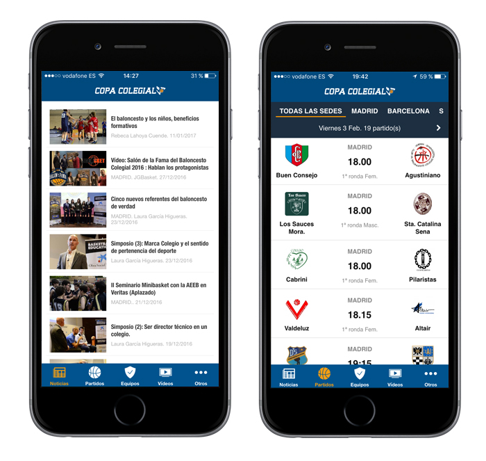Y en esta línea estamos encantados de presentaros la nueva app Copa Colegial, que ya está disponible para smartphones Android, en la Google Play Store, y próximamente lo estará también para iPhone en la AppStore.