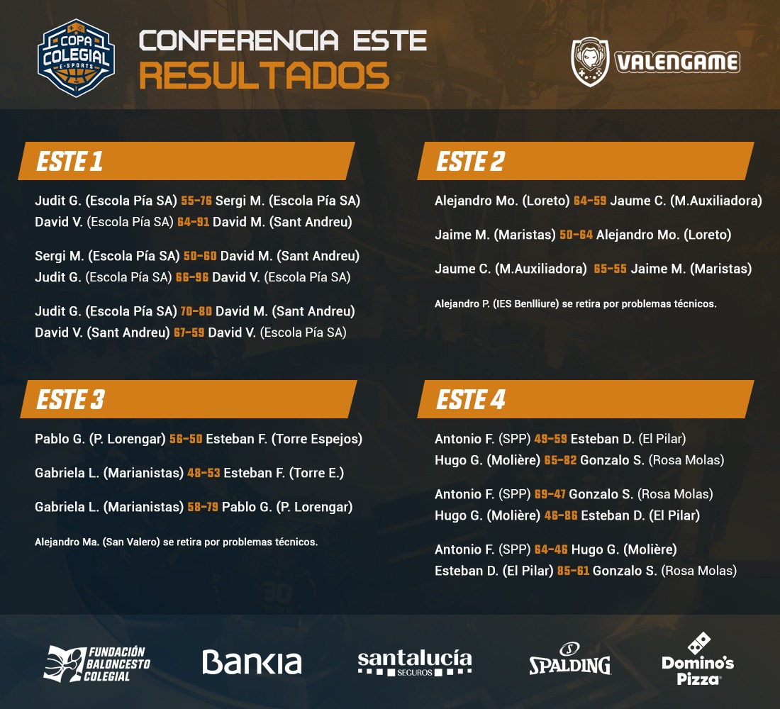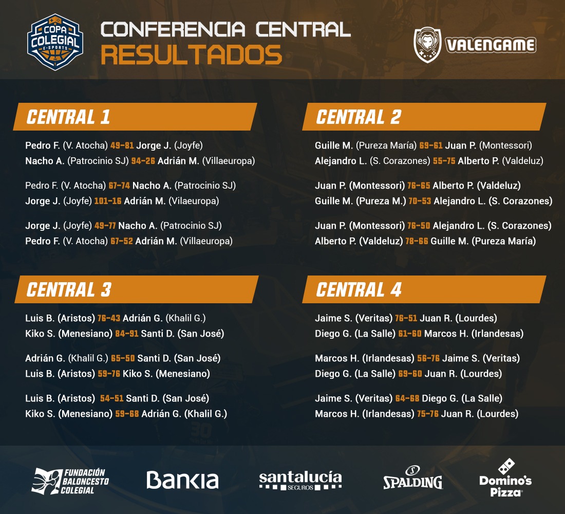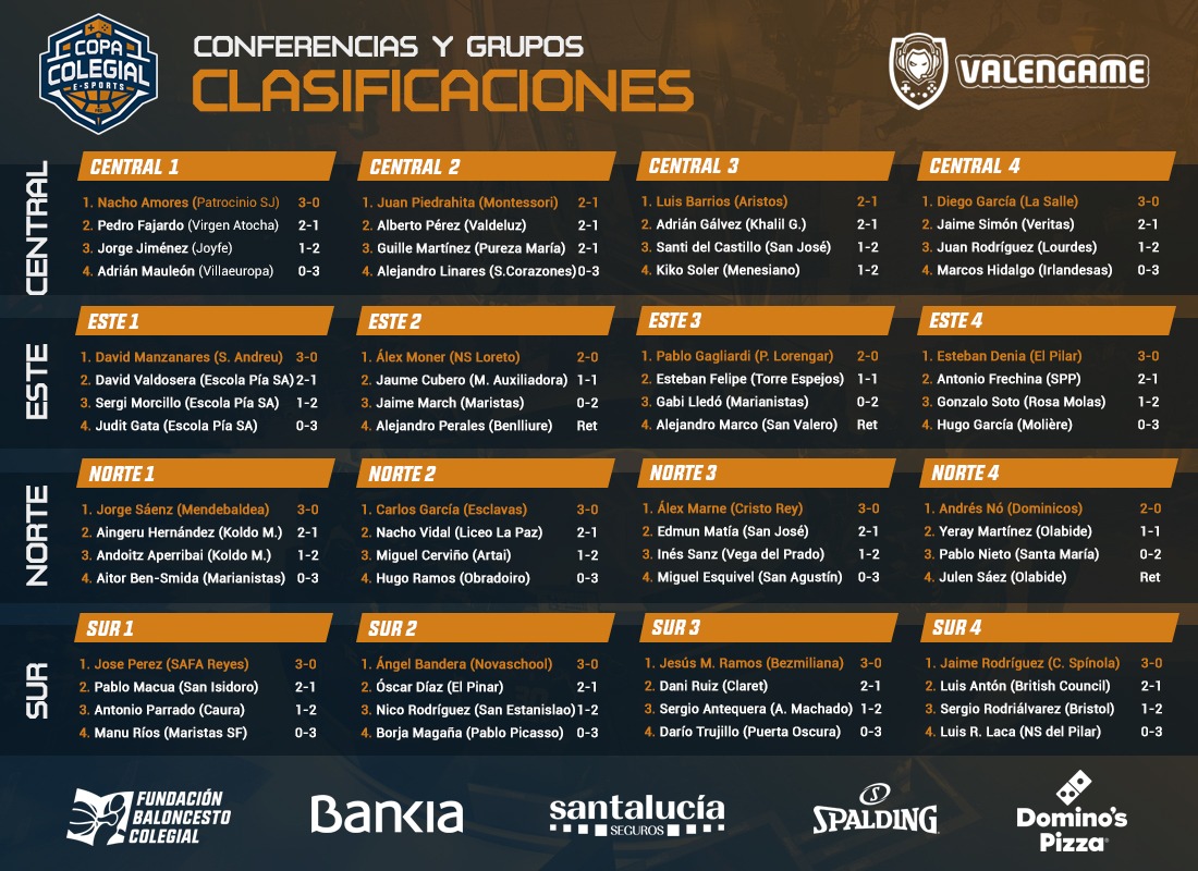 Tras haberse celebrado todos los partidos, la sede de Madrid será la que cuente con mayor número de jugadores. Nacho Amores (Patrocinio San José), Juan Piedrahita (Montessori), Luis Barrios (Aristos) y Jaime Rodríguez (Spínola) lucharán por el Estandarte virtual. Dos representantes tendrán Valencia, con Álex Moner (Nuestra Señora de Loreto) y Esteban Denia (El Pilar Blue Raptors); Valladolid, cuya representación ostentarán Diego García (La Salle) y Álex Marne (Cristo Rey); A Coruña, con Carlos García, de Esclavas y Andrés Nó, de Santo Domingo y Málaga, a cuya sede representarán Ángel Bandera (Novaschool) y Jesús Ramo (Bezmiliana). Solamente un participante tendrán Barcelona (David Manzanares, de Sant Andreu); Sevilla, con José Pérez, de SAFA Reyes; Zaragoza, que contará con el incombustible Pablo Gagliardi (Ave Fénix Pilar Lorengar) y Vitoria, representada por Jorge Sáenz, jugador de Mendebaldea.