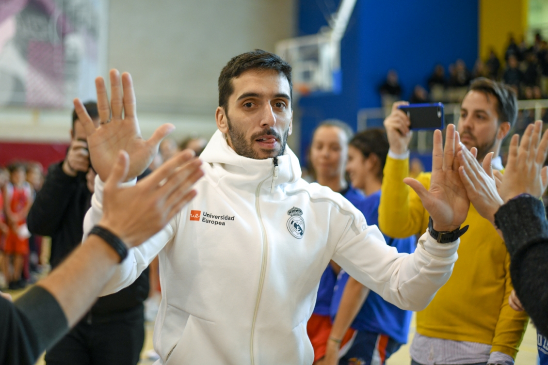Y como no, el gran embajador de la Copa Colegial no podía faltar. Joe Arlauckas dio paso junto con Pablo Martínez-Arroyo a las estrellas del equipo blanco, antes de pasar a realizar un breve juego con varios jugadores de la escuela.