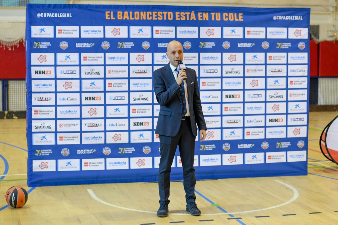 Francisco López-Vara, representante de Universidad Europea, que se une a nosotros: "Para la UE ha sido muy fácil llegar a este acuerdo, es un proyecto muy ilusionante. Ligamos el deporte a la actividad escolar, y eso nos encanta, estamos muy concienciados con reducir las tasas de sedentarismo y por eso la Copa Colegial es una torneo tan importante para nosotros".