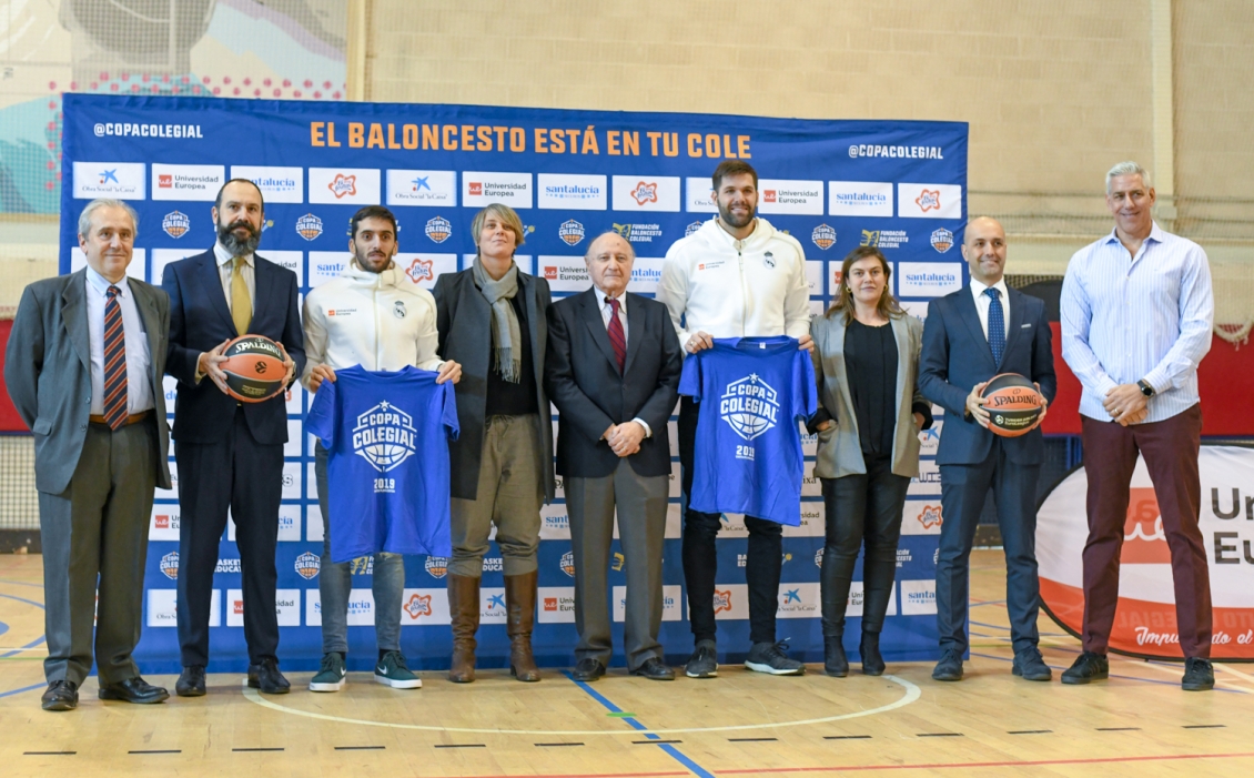Los fuegos ya están encendidos. La mecha de la Copa Colegial 2019 está viva, y de que manera. El pabellón del colegio madrileño Alameda de Osuna ha sido la sede escogida para la presentación oficial del torneo a nivel nacional. Con una de las voces más singulares y exclusivas de todo el territorio nacional, como es Pedro Bonofiglio, y la presencia de los jugadores del Real Madrid Felipe Reyes y Facundo Campazzo, la competición echa a andar.
