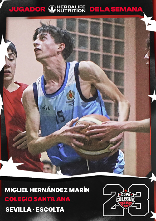 Si eres del Colegio Santa Ana y te gusta el baloncesto, seguramente ya hayas impreso una foto –la que ilustra esta noticia, por ejemplo– de Miguel Hernández Marín a todo color y calidad full HD para ponerla en tu dormitorio sustituyendo la de los Gasol, Stephen Curry o el mismísimo Lebron James. No es para menos, juega de escolta, nacido en 2007 y mide 185 cm. Físico poderoso, de gran zancada, muy ágil y con un soberbio lanzamiento. Además, parece que eso de la presión no va con él. Mentalidad de jugador mayúsculo.