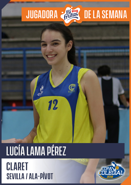 Con 172 centímetros de altura, Lucía Lama Pérez destaca por encima del resto del equipo. Juega de ala-pívot y su espigada figura baila sobre la pista como una araña cuando se pone la camiseta de Claret. En su primera batalla en la Copa Colegial Sevilla tuvo frente a ella al colegio Highlands y a la afamada Irene Fernández Rodríguez. Pero esos argumentos no fueron suficientes para que Lucía no desplegara su magistral actuación.