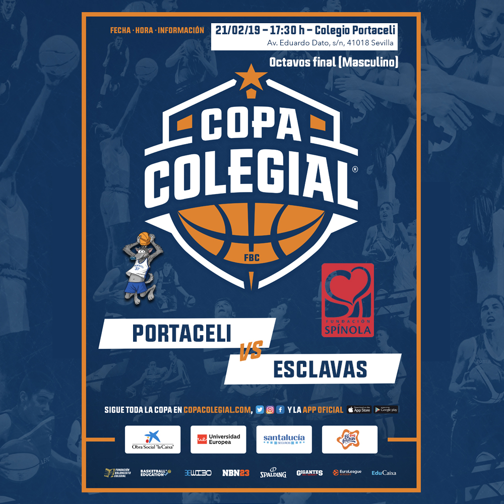 En el turno del jueves 21 de febrero salen a escena en categoría masculina Portaceli y Sagrado Corazón de Esclavas a partir de las 17:30 horas. Esclavas regresa a la competición tras años de ausencia y lo hace con una plantilla muy renovada y repleta de calidad. Actúan de visitantes ante Portaceli. Los chicos del colegio nervionense tampoco estuvieron en la edición de 2018, por lo que quieren dar un golpe sobre la mesa en 2019 y superar la ronda de cuartos que lograron en 2017 tras caer ante San Isidoro. ¡La suerte está echada!