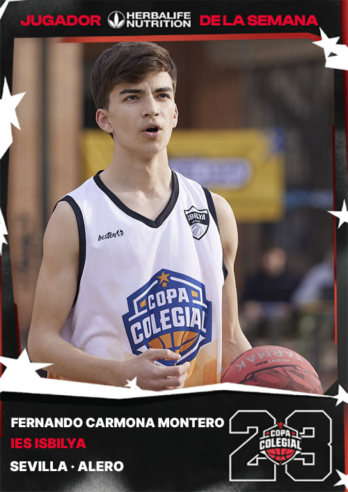 Nuevos equipos, nuevas generaciones y nuevas estrellas. En la décima edición del torneo sevillano ha debutado el IES Isbilya y lo ha hecho también con una de las grandes estrellas de la competición, Fernando Carmona Montero. El alero de Isbilya hizo un partido redondo en octavos de final y es el Jugador Herbalife Nutrition de la 3ª Semana de la Copa Colegial Sevilla 2023 en una semana sin partidos en categoría femenina.