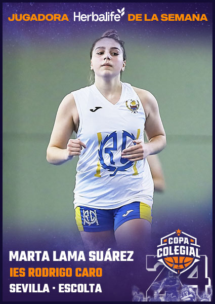 El pabellón de colegio Entreolivos ha sido testigo de la eclosión como estrella de Marta Lama Suárez, Jugadora Herbalife Nutrition de la Semana en la Copa Colegial Sevilla. Desde el salto inicial, Marta mostró su enorme talento con una doble canasta. Un inicio que prometía un espectáculo mayúsculo, como así fue.