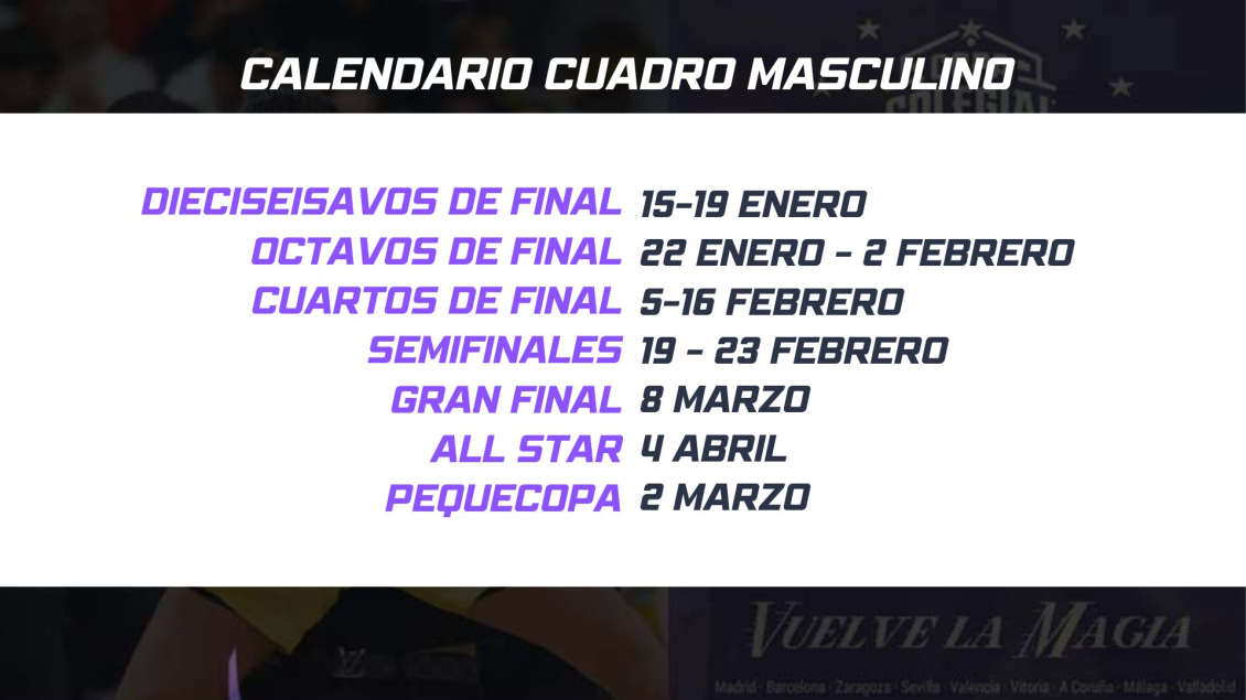 Se presentó el calendario oficial de los cuadros femenino y masculino y también el de eventos de la competición. A su vez, se ofrecieron las claves del nuevo formato del All Star para 2024, donde se mantiene el estilo Draft, pero se modifica la formación de equipos y selección de los capitanes a mitad de torneo. Finalmente se hizo un repaso a la normativa con cambios de interés para jugadores y jugadoras con idea de que el juego sea más fluido y atractivo para el espectador.
